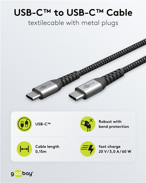 - Il cavo di ricarica USB-C™ di Goobay per una ricarica super veloce con 60 W