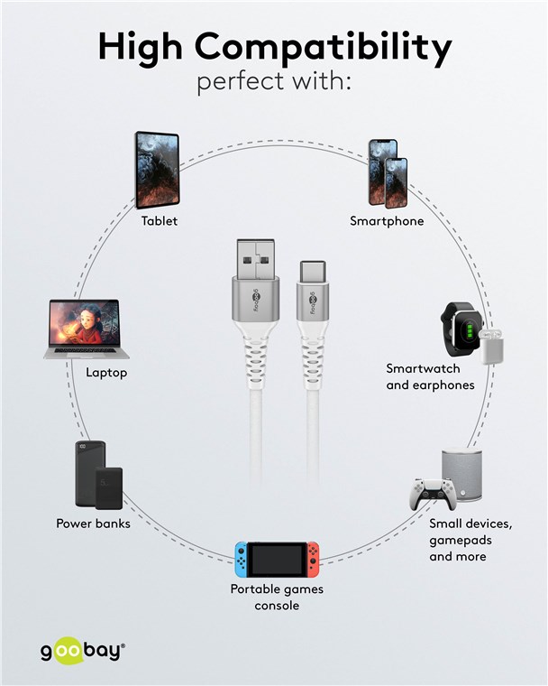 - Con una comoda lunghezza di 2 m, il cavo di ricarica USB-C™ di Goobay garantisce un ampio raggio d'azione