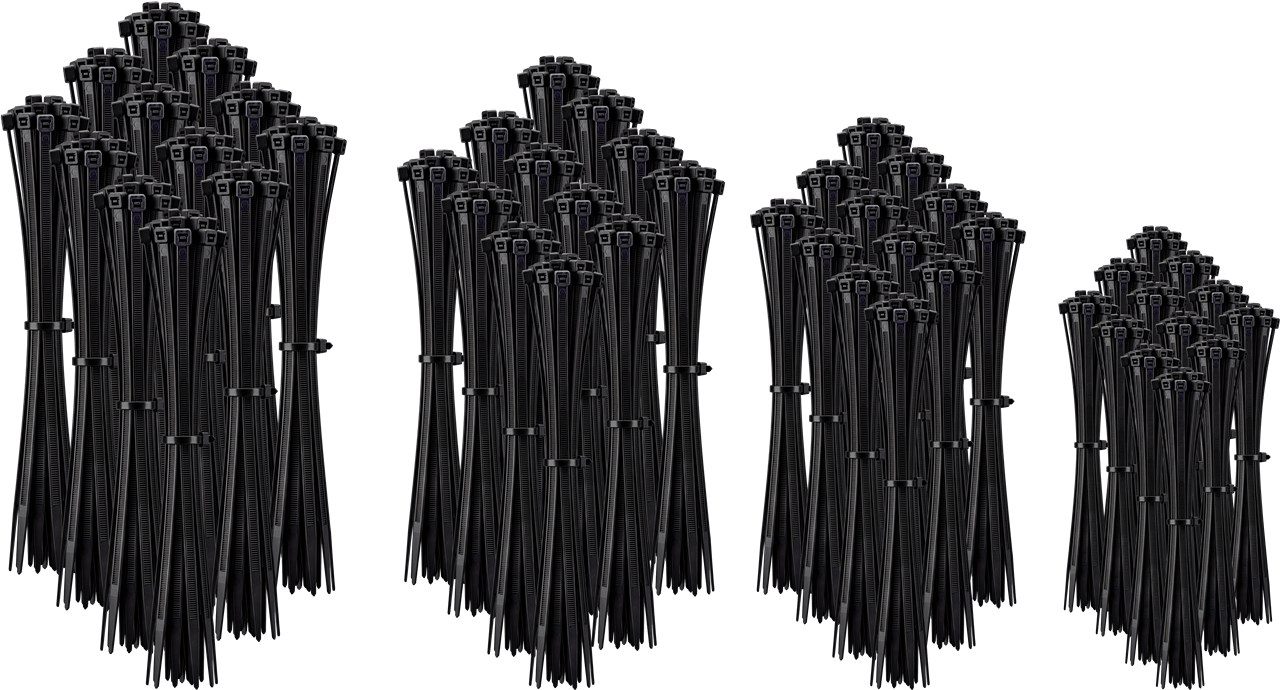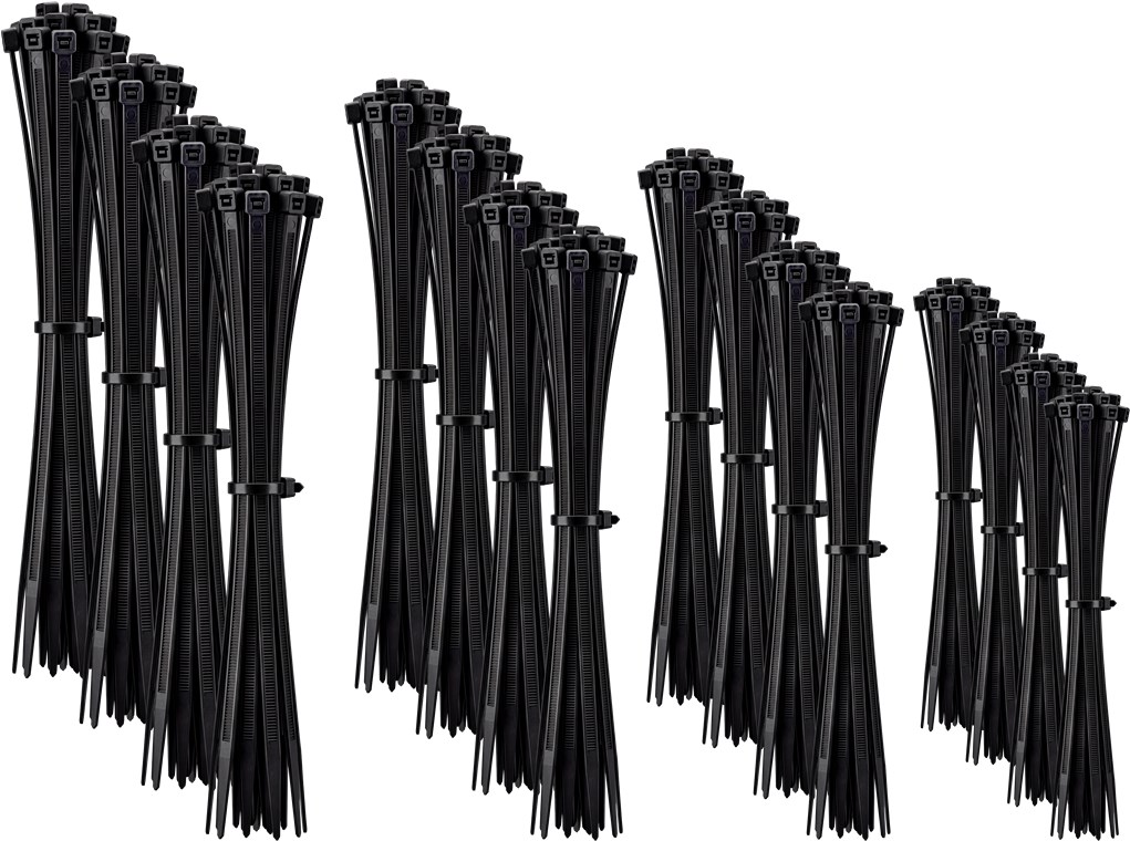 organizer per cavi in 4 misure, nero, con chiusura a scatto