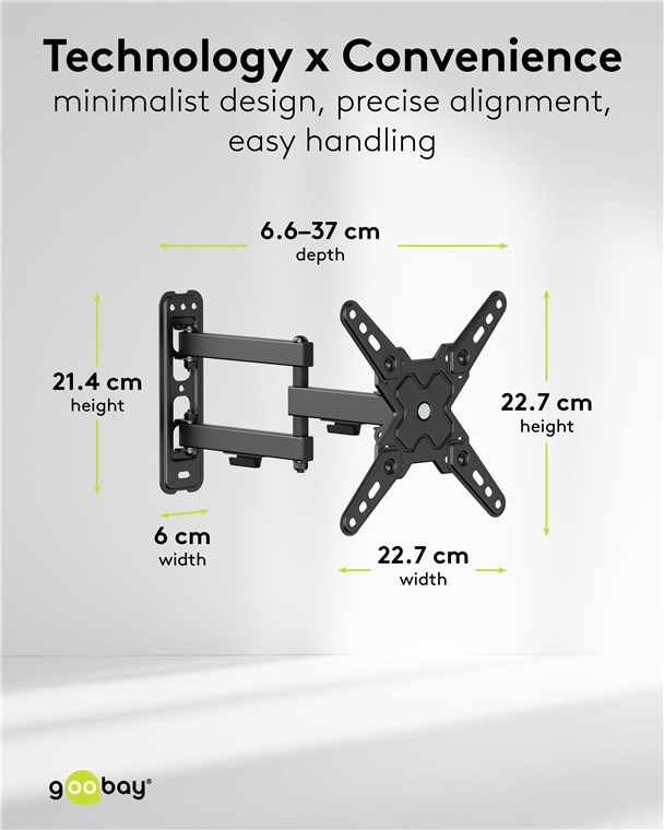 - Grazie all'estensione fino a 37 cm e alla funzione di rotazione, il supporto a parete consente di guardare la TV anche da angolazioni difficili