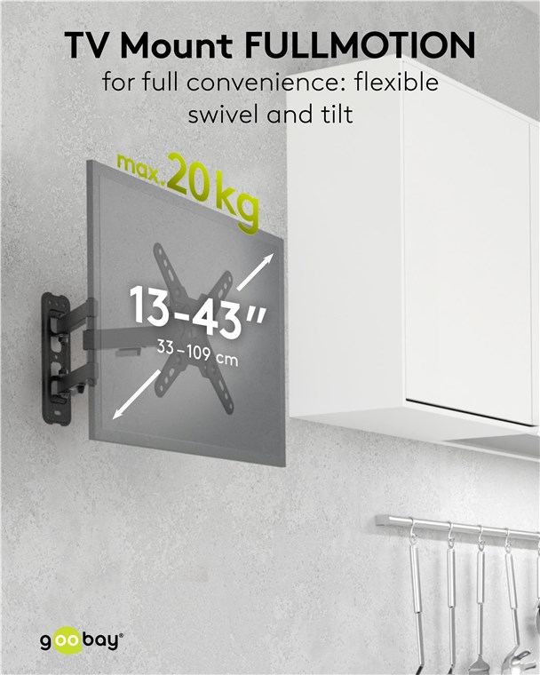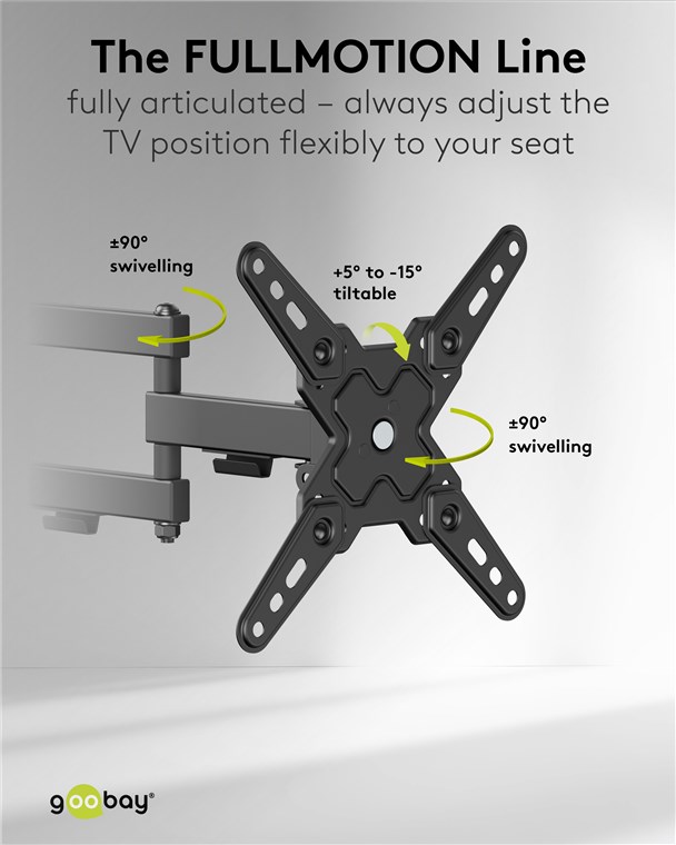 - Supporto TV flessibile per un angolo di visione ottimale: inclinabile da +5° a -15° (su/giù), orientabile da +60/-60° (sinistra/destra), ruotabile da +5° a -90° ed estensibile di 37 cm