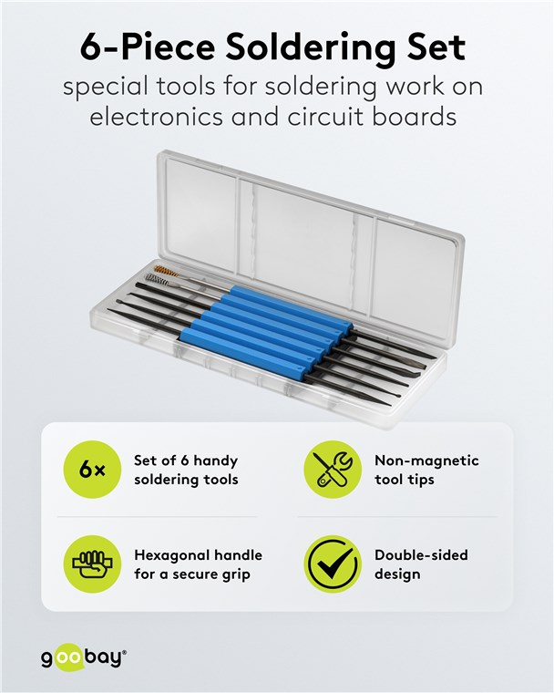- Pratico set di saldatura a doppia faccia per la lavorazione di circuiti stampati, la pulizia di piccole parti metalliche, lavori di precisione come la riparazione di gioielli, il modellismo, ecc.