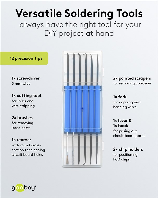 Versatile come un coltellino svizzero: Con dodici punte di precisione, avrai sempre a portata di mano lo strumento giusto per il tuo progetto fai da te. Che si tratti di saldatura, riparazione, creazione di dispositivi elettronici o modellismo, con le diverse punte potrai affrontare con facilità qualsiasi sfida complessa. Mini strumento, massima efficacia.