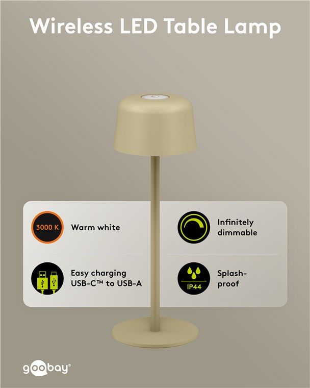 Bezprzewodowa lampa stołowa LED, rozmiar S, 25 cm, beżowy
