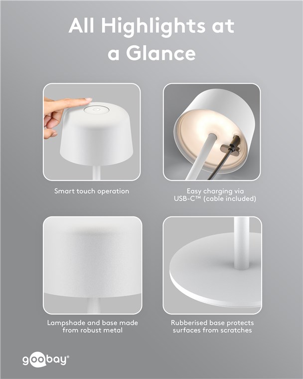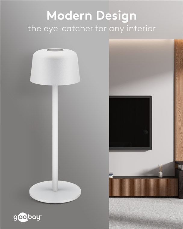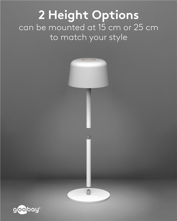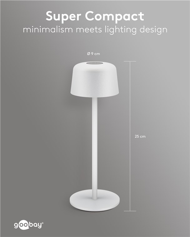 Dzięki minimalistycznemu, skandynawskiemu wzornictwu, lampa stołowa wzbogaci każdy salon, sypialnię lub jadalnię, a także będzie wizualnym akcentem na przyjęciu w ogrodzie. Wykonana z wysokiej jakości, solidnego metalu, innowacyjna lampa Goobay to synonim jakości i trwałości.
