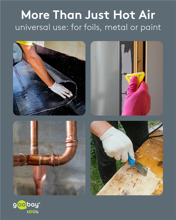 • Wszechstronna opalarka, np. do nakładania koszerek termokurczliwych, odmrażania metalowych przedmiotów, formowania tworzyw sztucznych lub metalu