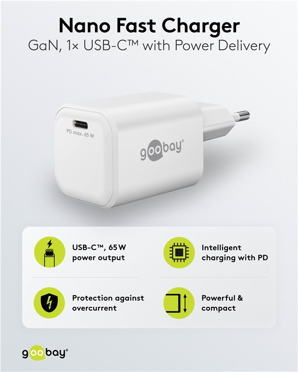 Szybka ładowarka USB-C™ PD GaN Nano (65 W) biały