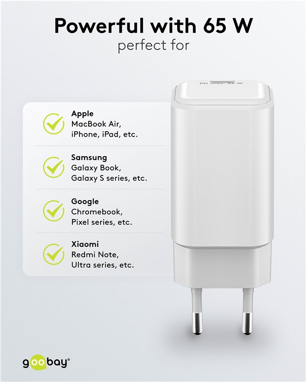 - Dzięki potężnej mocy 65 W i uniwersalnemu złączu USB-C™ adapter do ładowania nadaje się do niemal każdego urządzenia - od smartfonów po wydajne notebooki