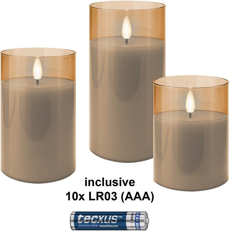 Trzyelementowy zestaw świec LED z prawdziwego wosku w słoiku, złoto-przezroczysty, z 10x AAA (LR03)
