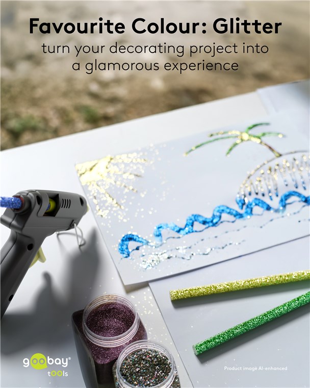 Nie tylko jednorożce błyszczą: kolorowe kleje w sztyfcie sprawiają, że każdy projekt dekoracyjny staje się efektownym przeżyciem – na Boże Narodzenie, urodziny lub podczas majsterkowania z dziećmi. Klej na gorąco niezawodnie przylega do wielu materiałów i powierzchni, tworząc błyszczące akcenty na lampionach, etui na telefony komórkowe, ramkach do zdjęć itp.