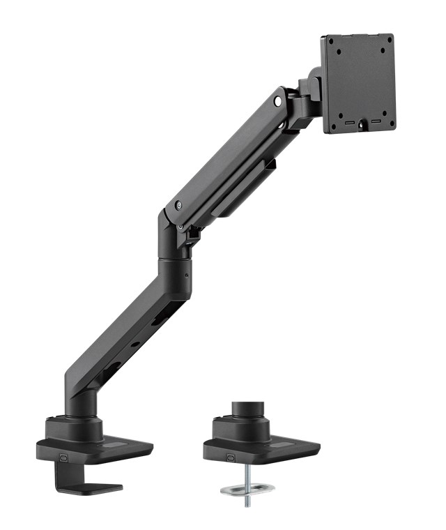 - Sprężyna gazowa z elastycznym poziomem nacisku umożliwia ustawienie monitora w idealnej, ergonomicznej pozycji w dowolnym momencie bez żadnego wysiłku – czy to do pracy, gier czy rozmów wideo