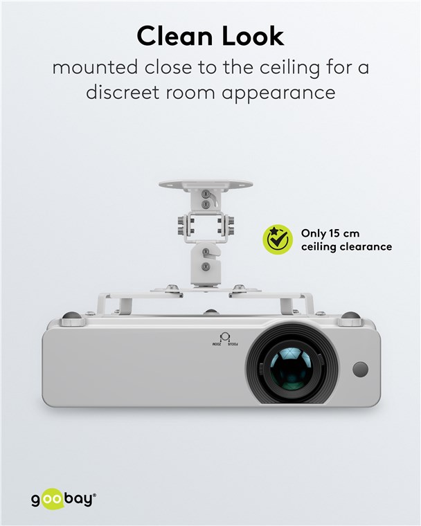 • Estetyczny wygląd: Dzięki stałej odległości od sufitu wynoszącej 15 cm uchwyt projektora jest zamontowany blisko sufitu – idealne rozwiązanie zapewniające dyskretny wygląd bez zasłaniania pola widzenia