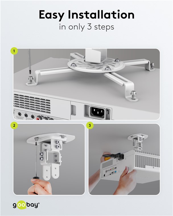 • Łatwy montaż: dzięki dołączonym elementom montażowym uchwyt do projektora można szybko i łatwo zainstalować