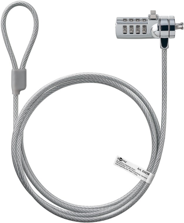 - Das Stahlseil lässt sich schnell und einfach um ein Tischbein wickeln und mit dem Kabelschloss am Gerät fixieren